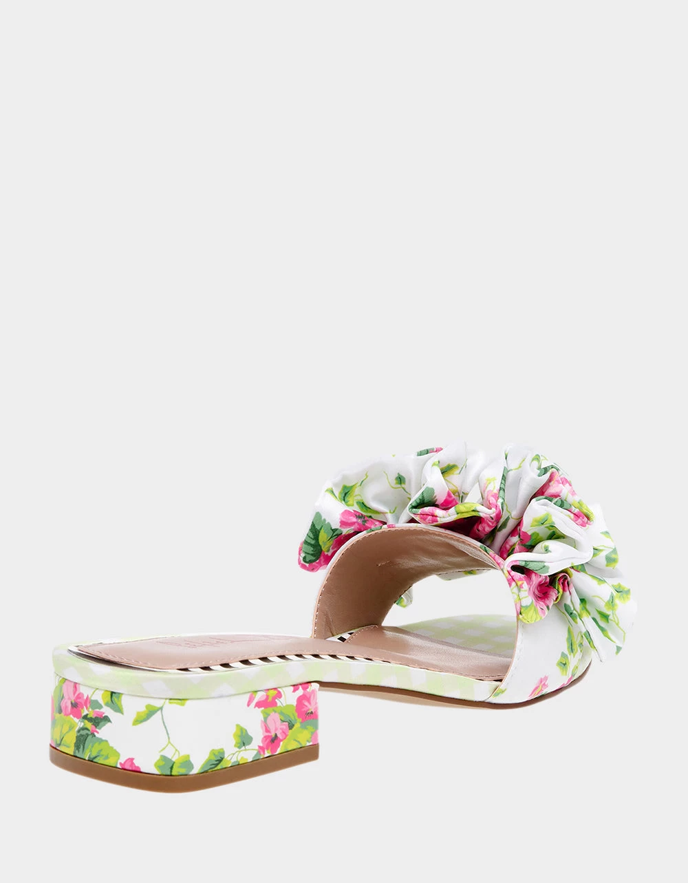Introducing our stunning ALIVIA floral ruffle sandal, the perfect accessory to add a touch of femininity and elegance to your outfit! this sandal features a beautiful floral pattern that is both playful and stylish, while the ruffled strap adds a touch of romance and charm.