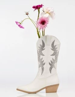 Rock out in the ALIZA ivory white western boot that offers a fierce bling design! Perfect for concerts, festivals, or any occasion where you want to make a statement. These rhinestone bedazzled boots will bring serious sparkle to your look!
