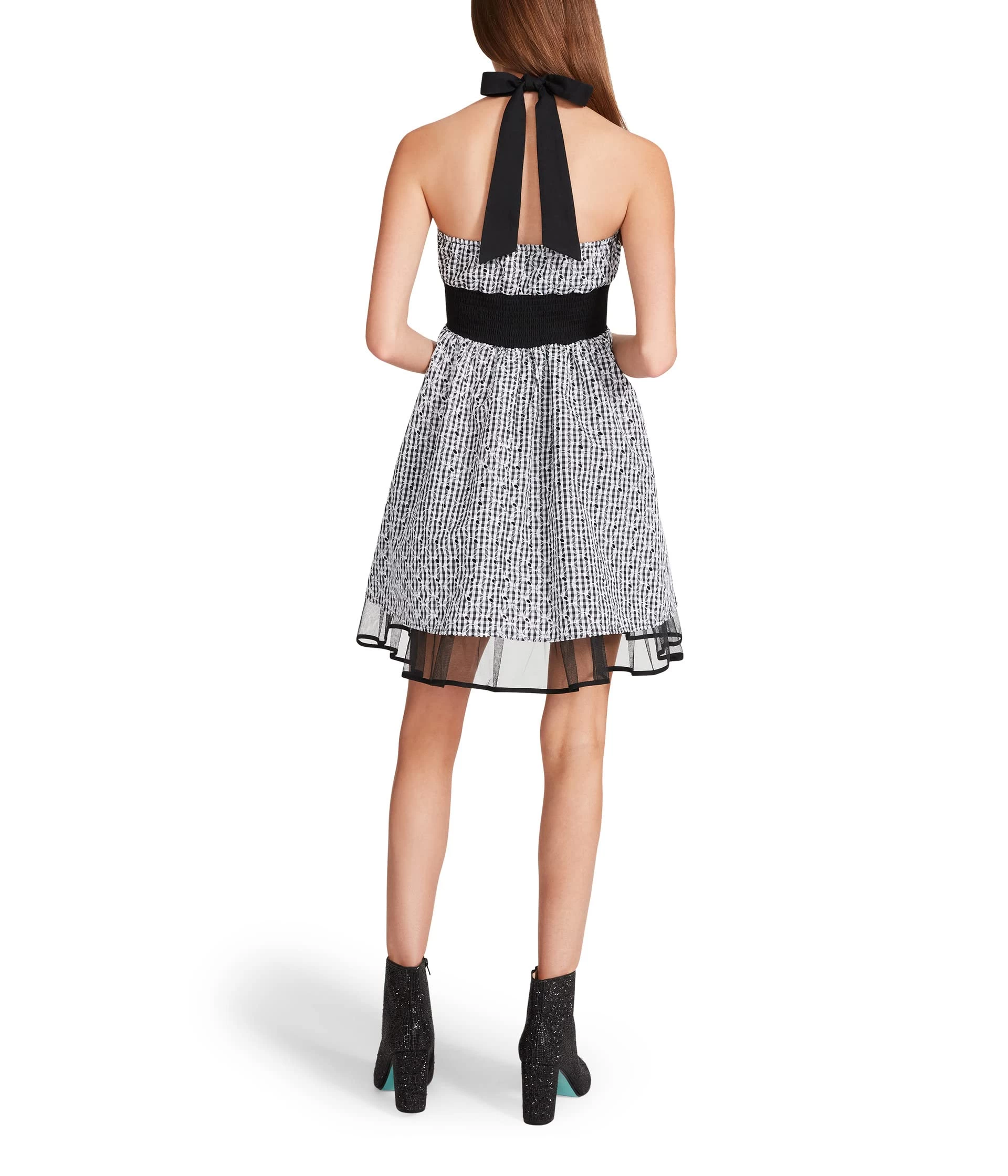 - Give a dash out vintage style to your outfit with the Betsey Johnson® Gingham Eyelet Halter Fit-and-Flare Dress.