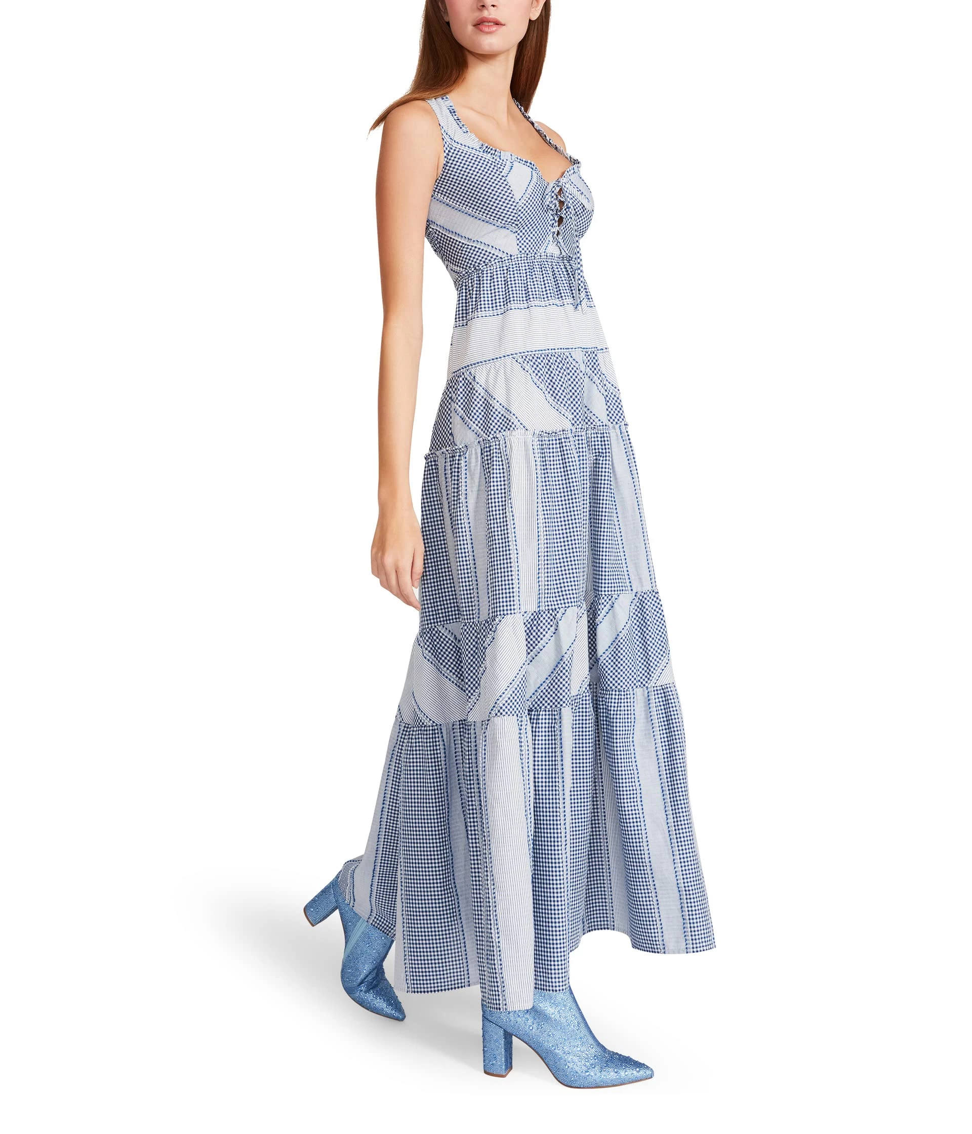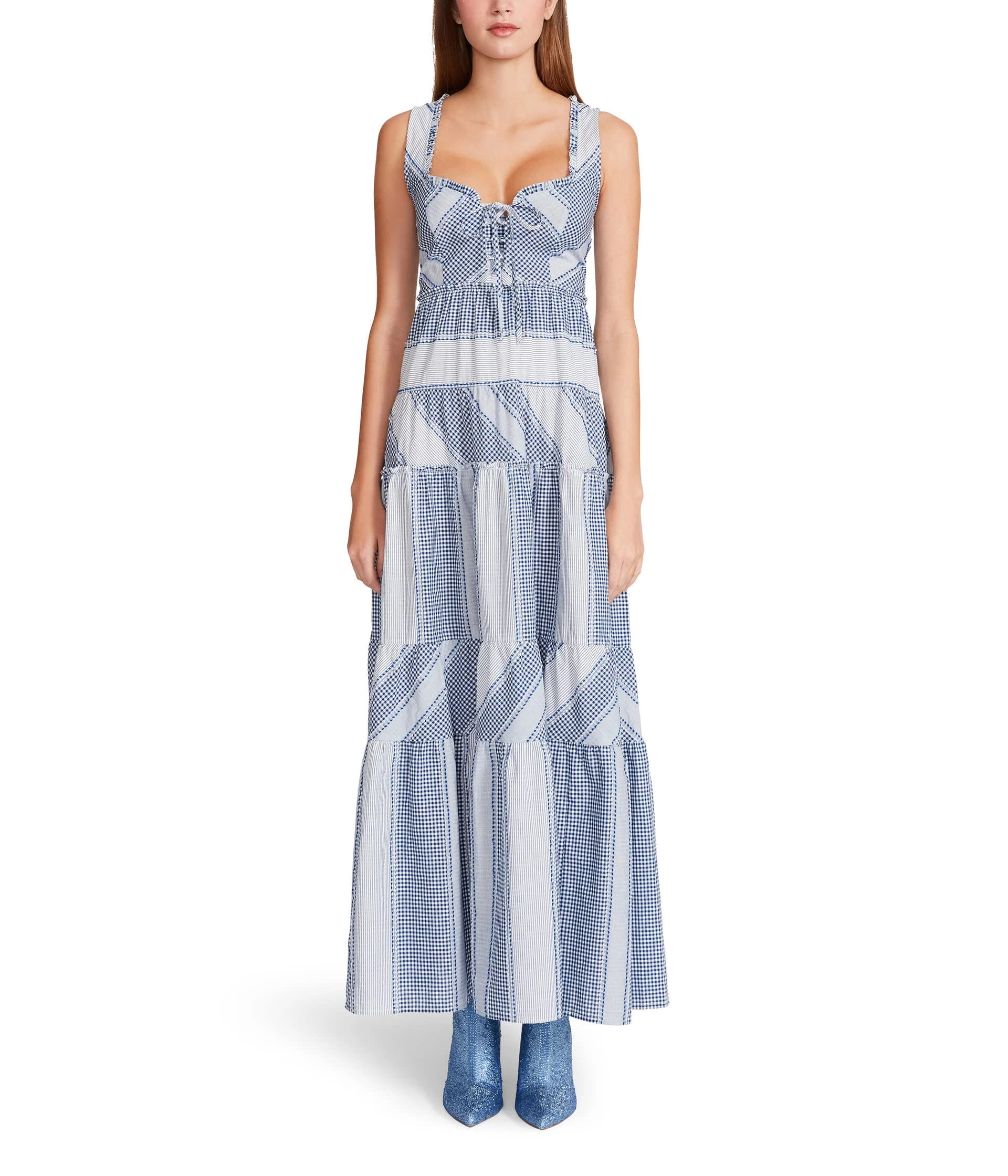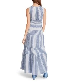 - Elevate your usual flair sporting the Betsey Johnson® Stripe Play Yarn-Dye Cotton Tiered Maxi.