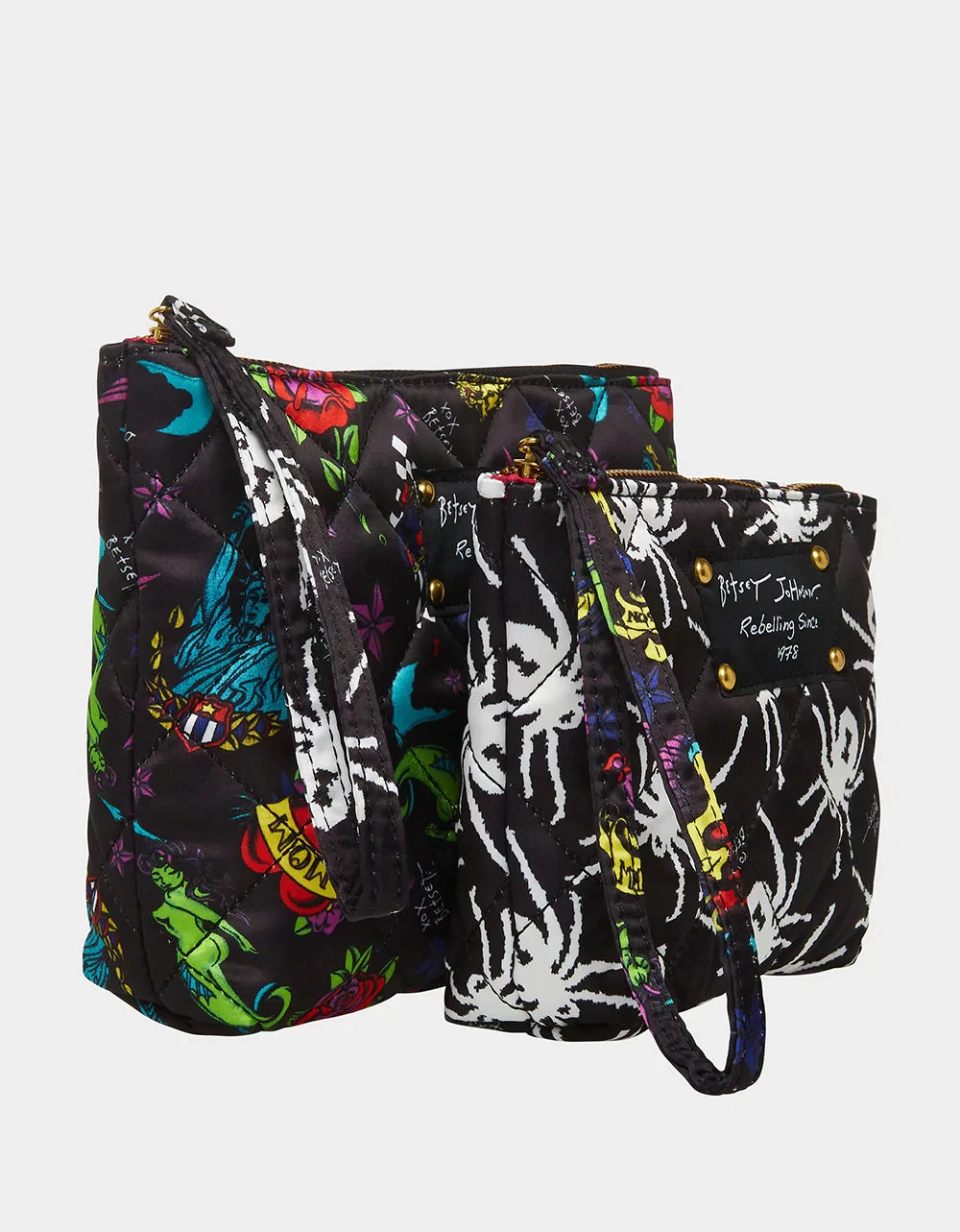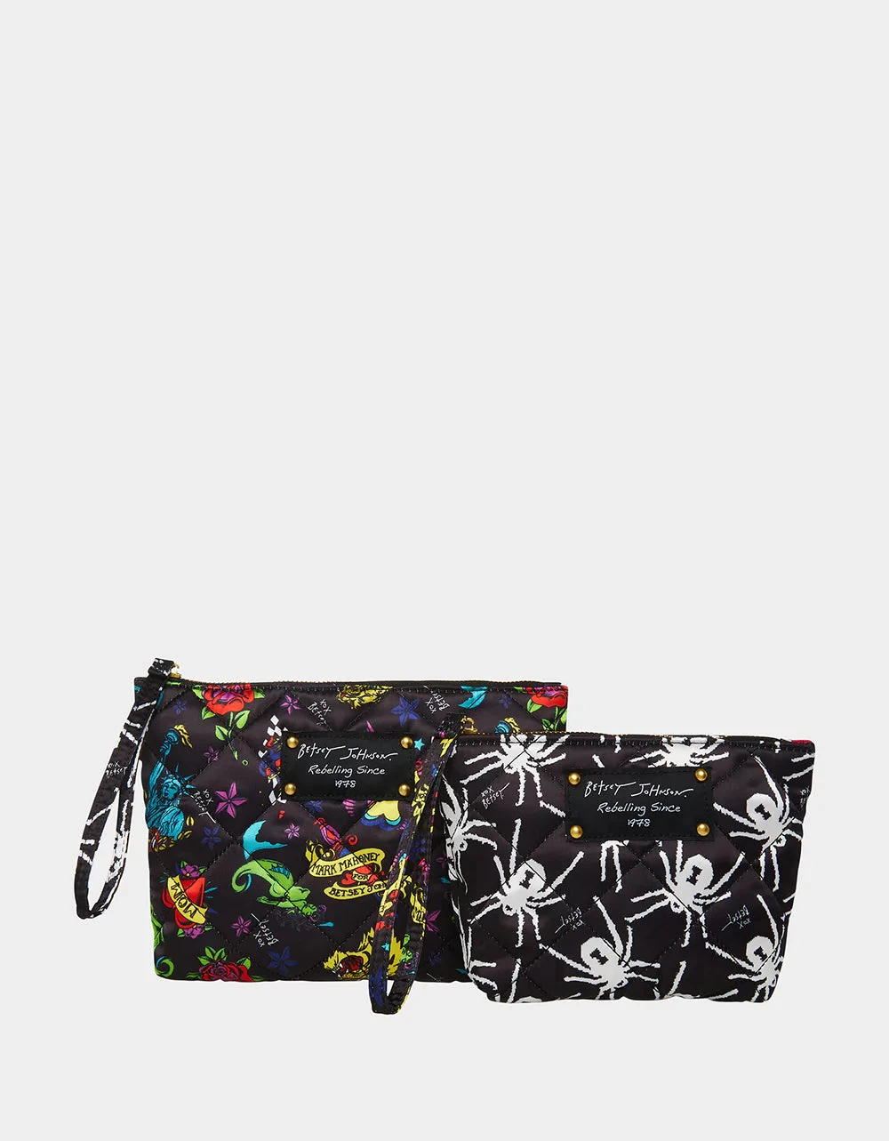 This 2-piece cosmetic set is perfect for all your cosmetic needs. Includes one large and one small bag both with zip closure.