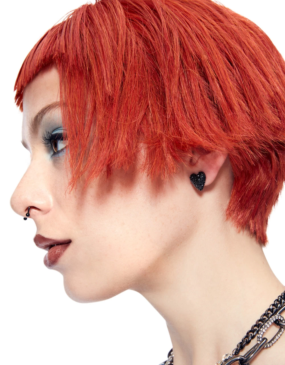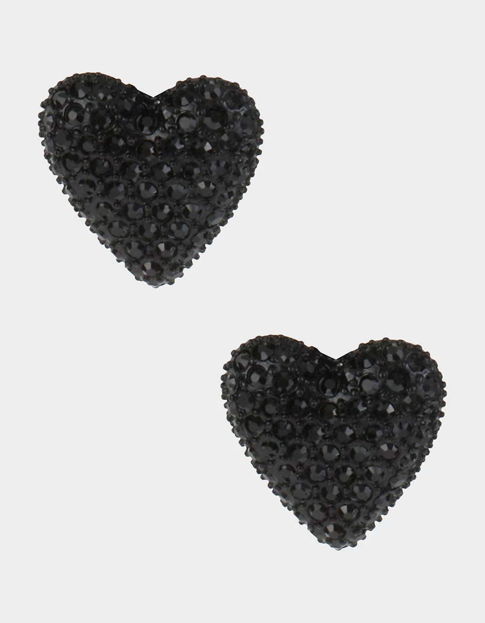 The BETSEYS BLACK HEART STUDS are a bold, sparkly pair of heart earrings. Two heart-shaped studs are accented with black-colored crystal accents for an edgy look.