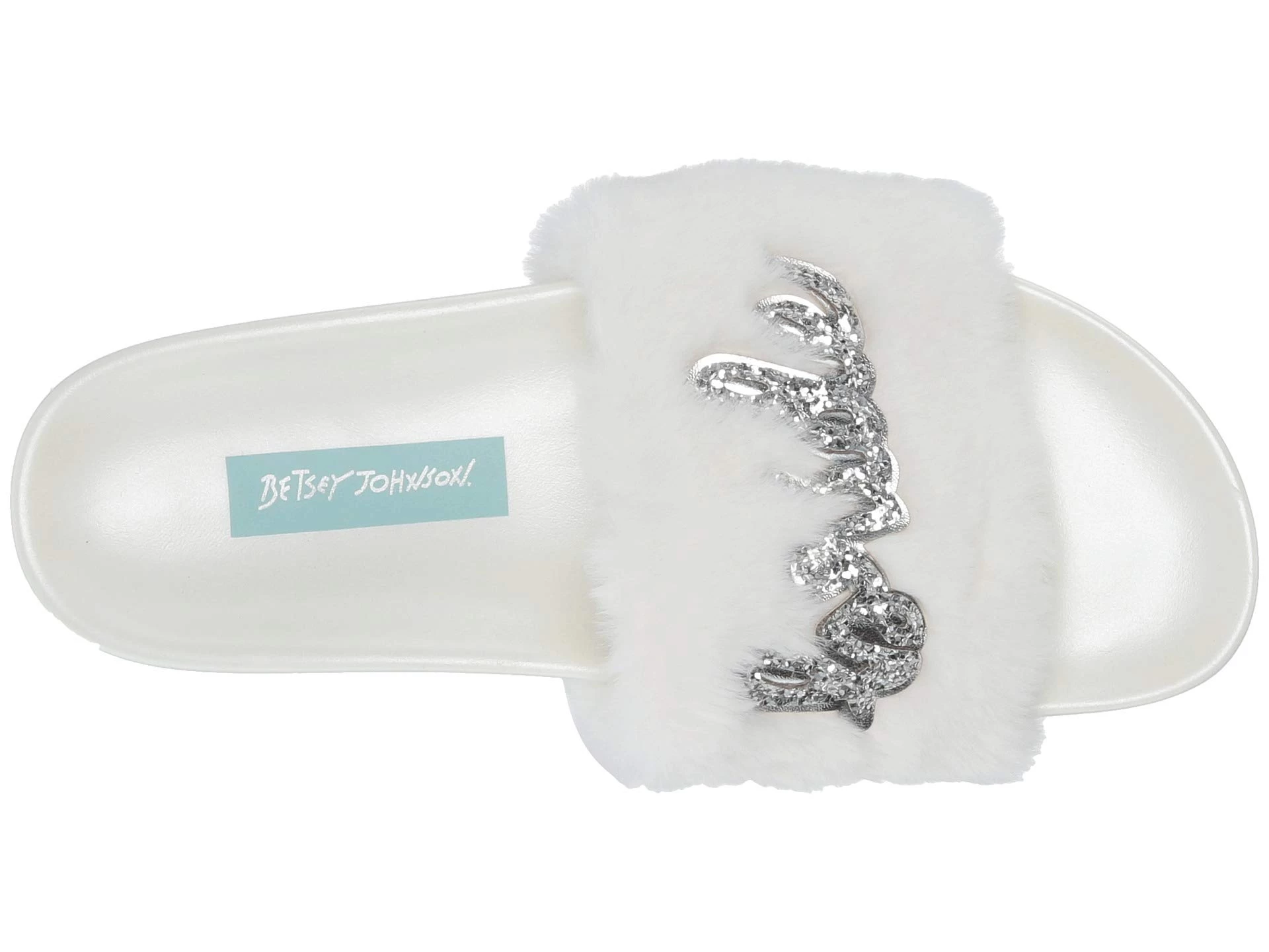 - Elevate your look as you lounge around in these Blue by Betsey Johnson® Alice Slipper with a faux-fur upper and “Bride” sequin design at vamp.