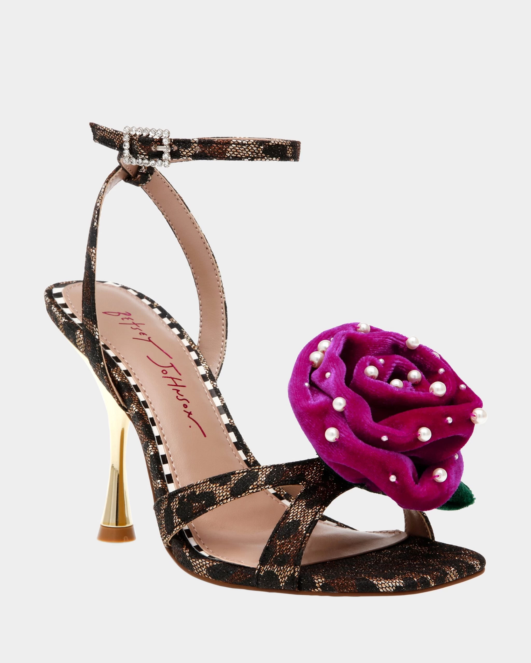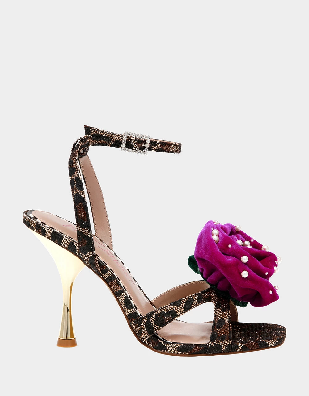 Will you accept this rose!? The CARLOS LEOPARD MULTI rose embellished heel is a flirty and romantic take that makes it the perfect evening shoe. Its bold design is guaranteed to make you fall in love!