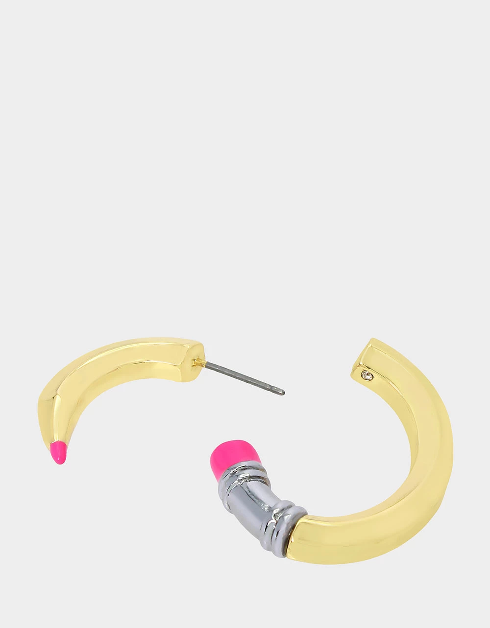 Unique front-to-back ear earrings featuring bright gold pencils are perfect for back to school. Earrings have a post-back closure. Made from metal and enamel.