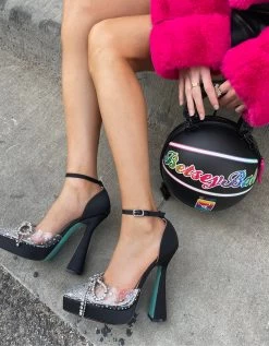 Step out in style with CHER satin heel! Looking for a shoe that’s sure to spice up your evening? This platform heel features a rhinestone bow on its transparent pointed toe that is perfect for adding a touch of sparkle to your wardrobe.