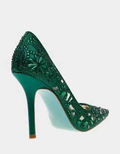 Step out in style in the CHIC patterned stone heel! Its pointed-toe and unique chop-out rhinestone design is embellished over sheer nude mesh providing a classic and sultry look.