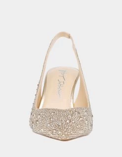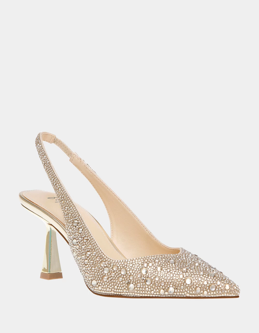 Slip into the shimmering CLARK gold heels that are adorned with a luxurious rhinestone sling-back design. These heels will add a touch of sparkle to any outfit, allowing you to show off your look in style!