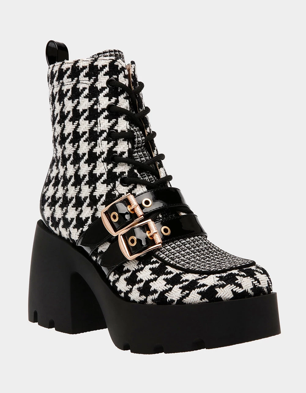 Add a touch of style to your wardrobe with these COTTON plaid-patterned booties! Your feet will be fashion-forward and chic with its lace-up buckle design plus inner zip to slip in with ease.