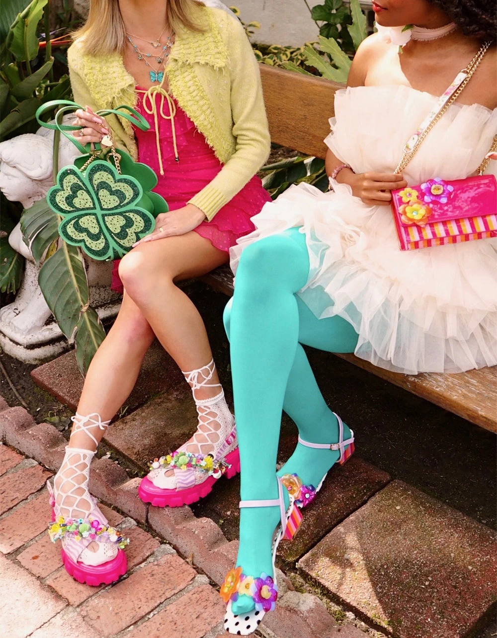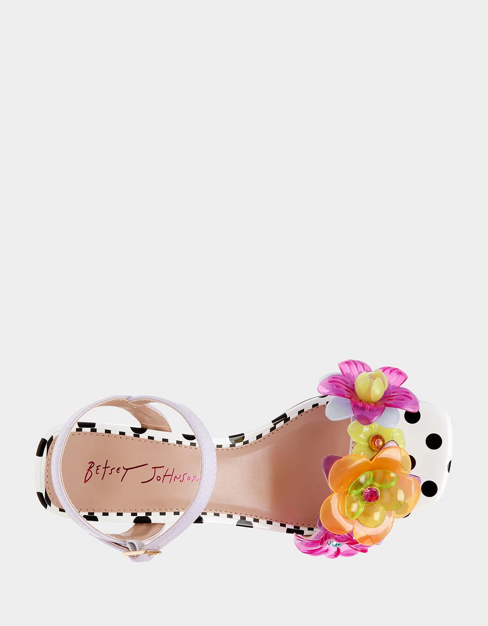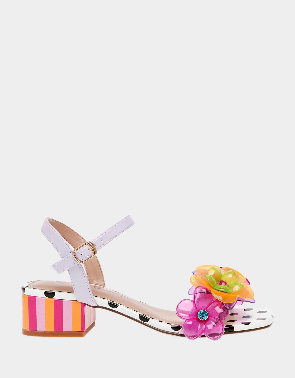 Make a statement with our beautiful floral lucite sandals. Featuring a block heel for added height, these shoes will give you a bold and chic look. The intricate floral design is set on a clear lucite base, making them the perfect finishing touch to any outfit.