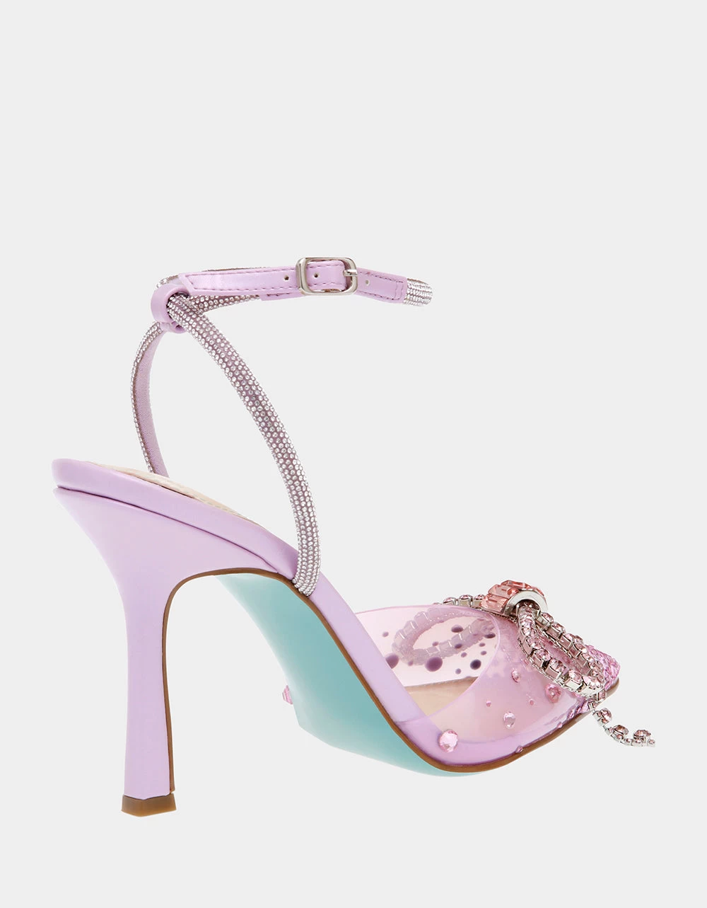 - Transparent synthetic upper with rhinestone bow