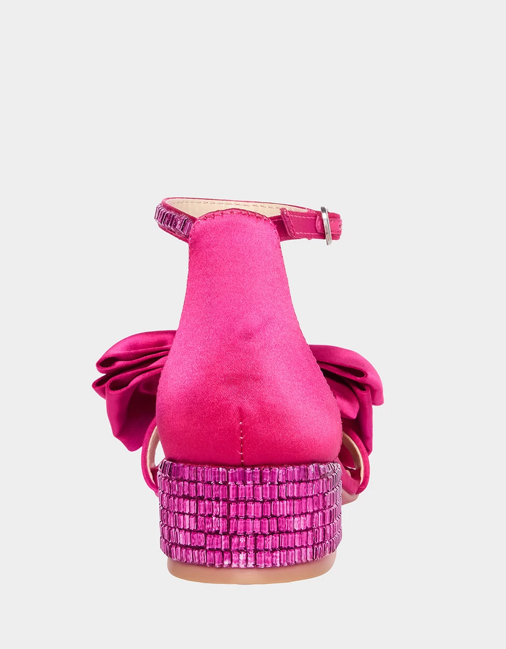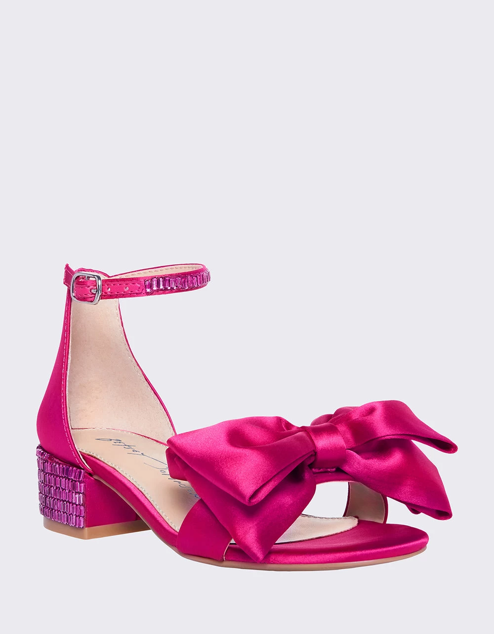 Bring dazzle and drama to any ensemble with the KIDS’ MADDY heel! These bold and beautiful block-heeled shoes feature an oversized satin bow and sparkle details.