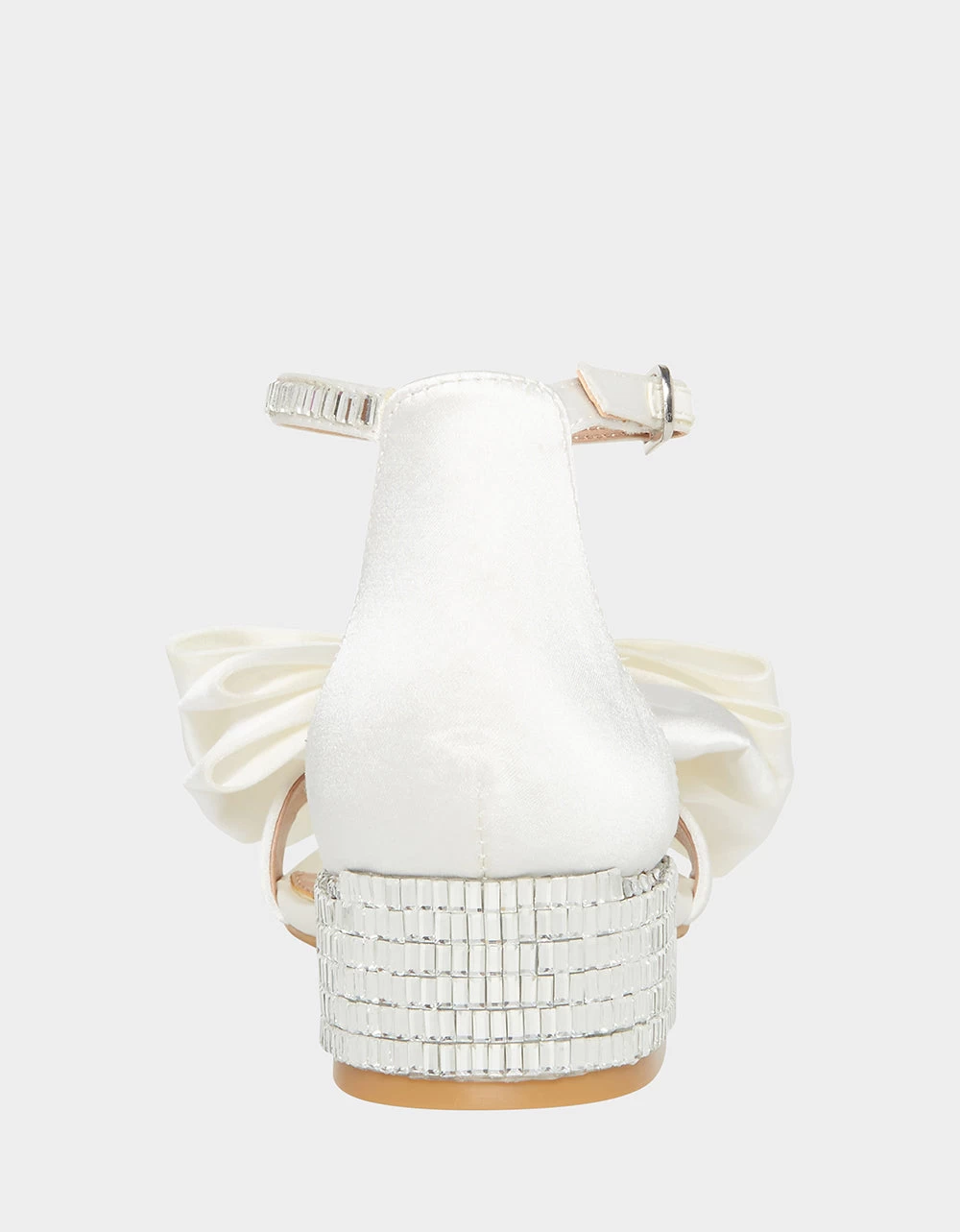 Bring dazzle and drama to any ensemble with the KIDS’ MADDY heel! These bold and beautiful block-heeled shoes feature an oversized satin bow and sparkle details.