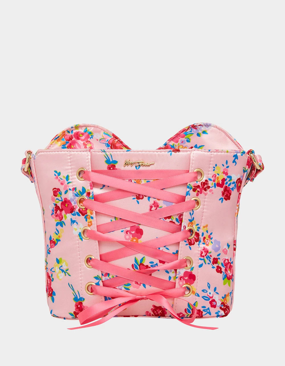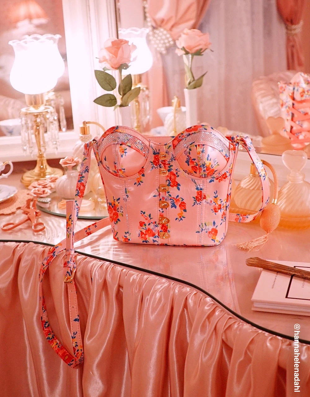 Make a statement and turn heads with our captivating kitsch bustier corset-shaped handbag. This pink crossbody bag features a convenient top zipper opening, charming front hook details, and an alluring lace-up detail on the back, making it the perfect blend of functionality and fashion.