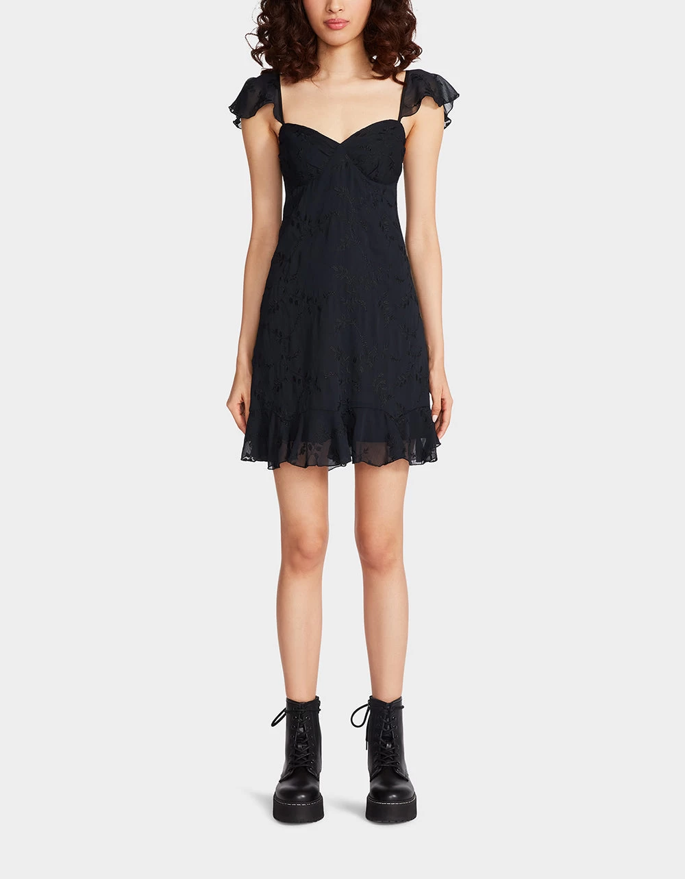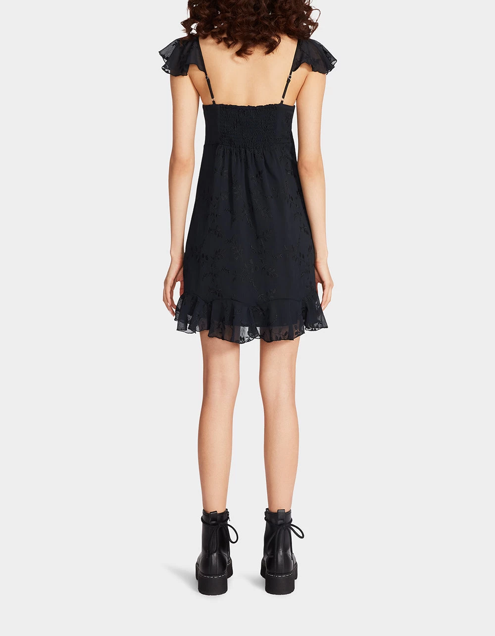 The Lotus Mini Dress features a stylish silhouette with shoulder sleeves and a breathable floral detail mesh fabric. Perfect for the warm weather, this dress is ideal for any occasion.
