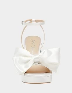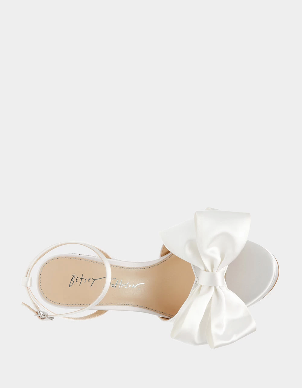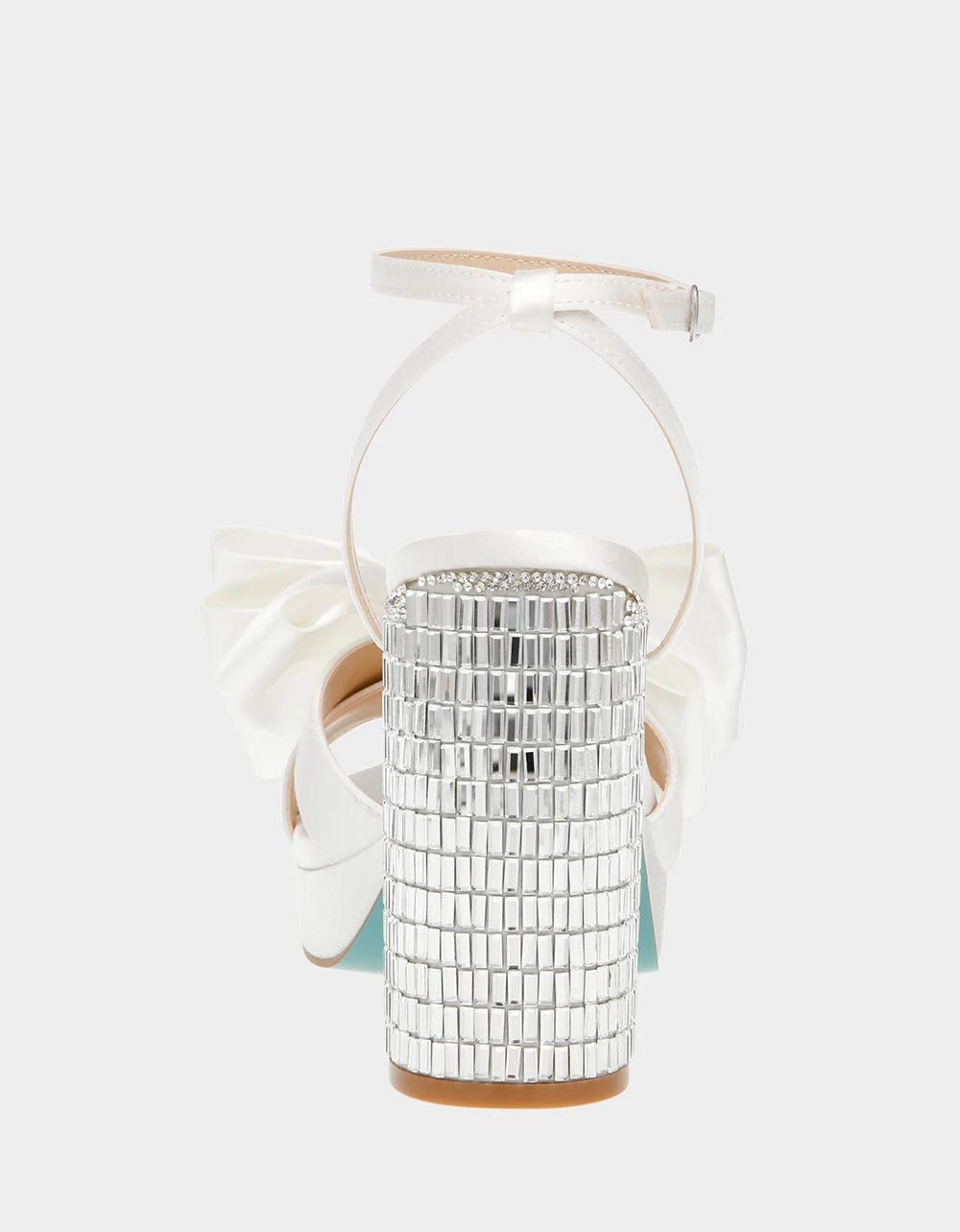 The MADDY platform heel is a show-stopping masterpiece featuring a luxuriously soft satin with an oversized bow and a sparkling rhinestone block heel. This dazzling statement piece has enough sparkle to make you stand out and shine.