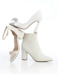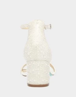 The sparkly MARI heel is a flirty open-toed sandal glistening with pearl stone embellishments. These pearl block heels are ideal for any formal occasion or a night out on the town. The sleek mid-low short kitten heels feature a comfortable and stable block heel with an adjustable ankle strap that will keep you dancing all night long.