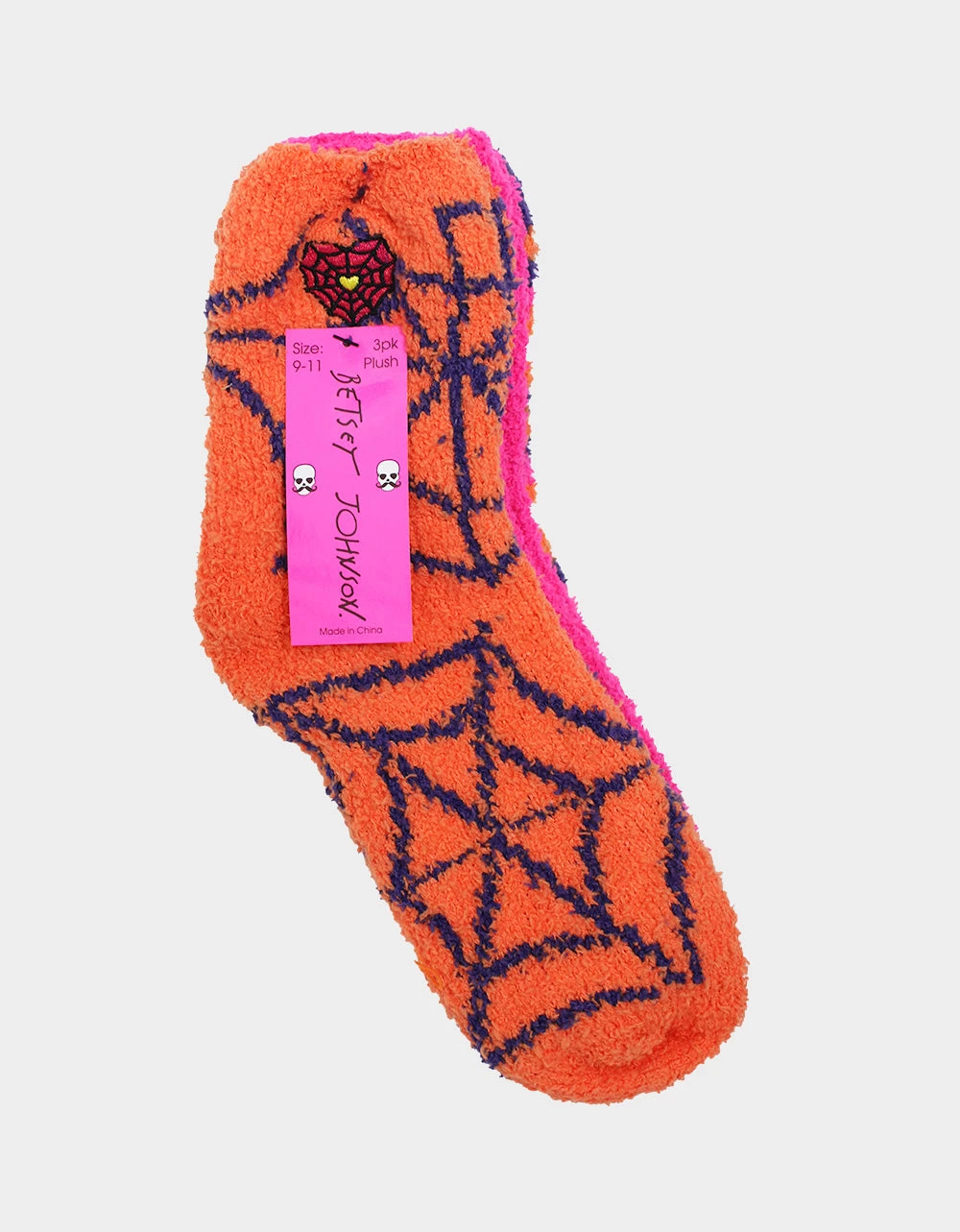 Bring a little pinch of fun to your sock drawer with our Plush Spider Print Three Pack Socks! These fuzzy socks feature an orange and black spider web print that’s sure to spook up any outfit.