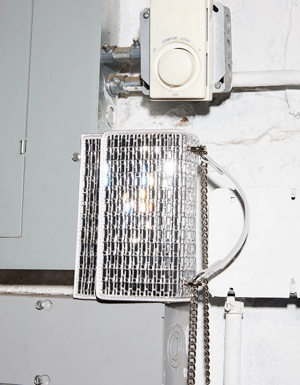 - Adjustable chain strap (doubled for over-the-shoulder, or lengthened for a crossbody)