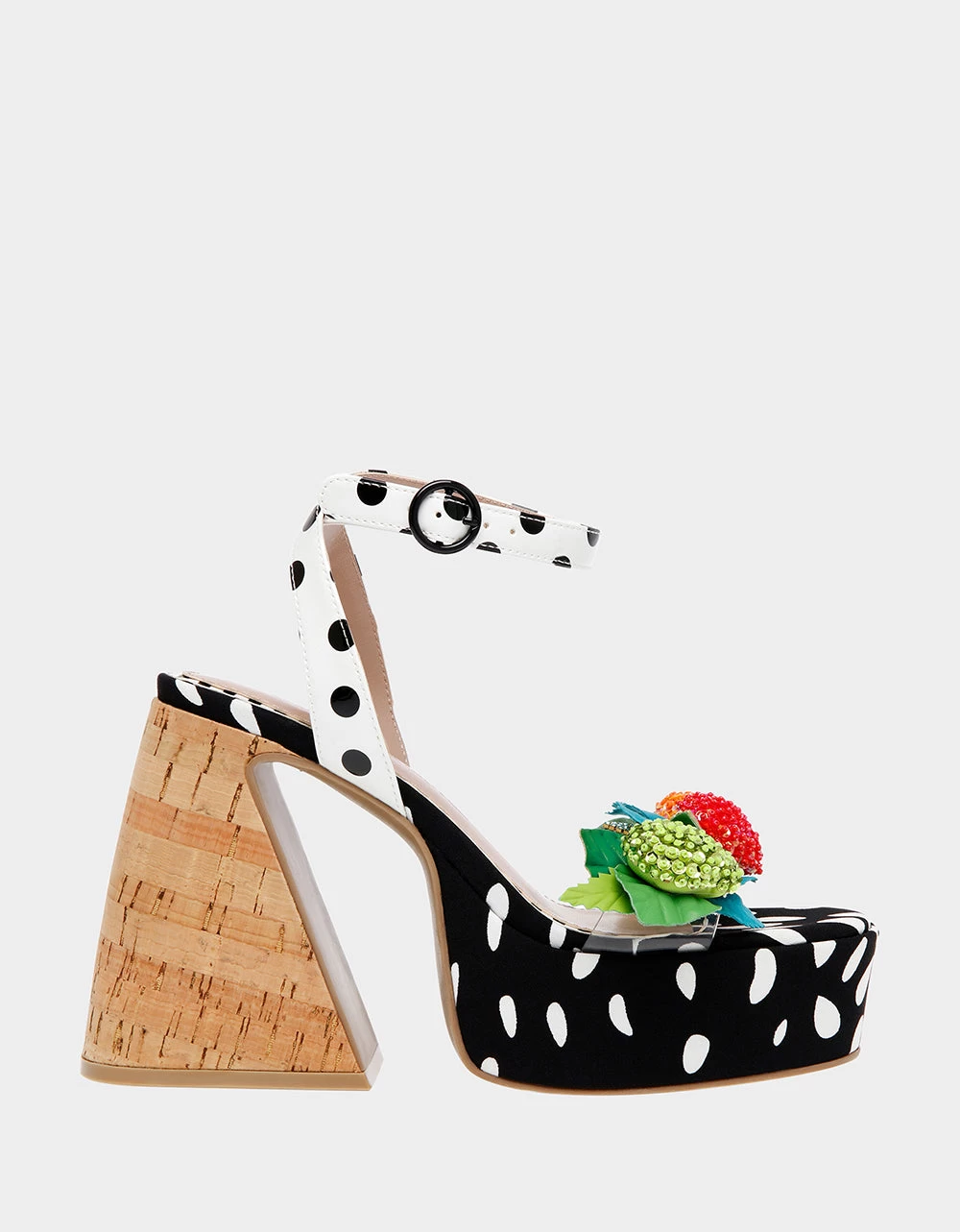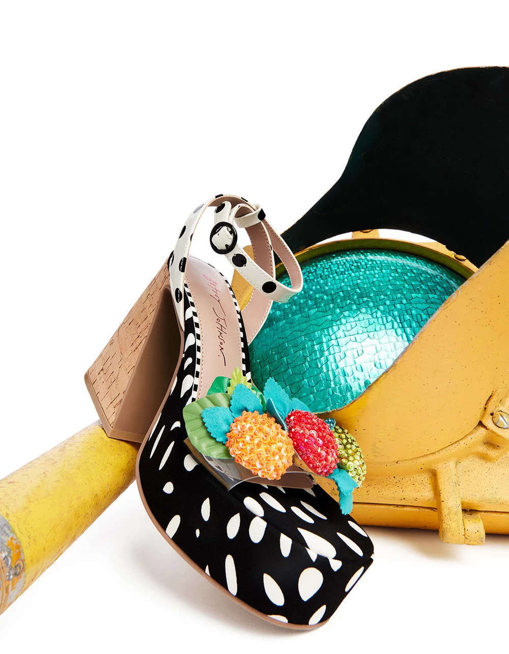 Step into style with the bold SPRITE heels! Show off your unique style with signature prints and a beaded floral toe strap design. This cool combo will turn heads wherever you go.