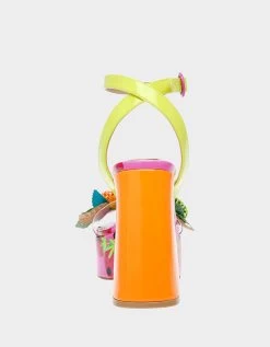 Step into style with the bold SPRITE heels! Show off your unique style with signature fruity prints and a beaded floral toe strap design. This cool combo will turn heads wherever you go.