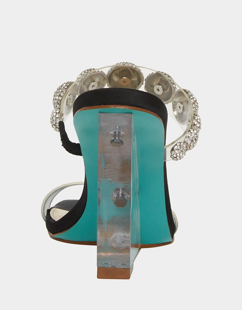 Create an illusion of height with the translucent wedge heel that adds sophistication and elegance to your look. The rhinestone embellishments will add a luxurious touch to your outfit, making it the perfect choice for a night out, a wedding, or any special occasion.