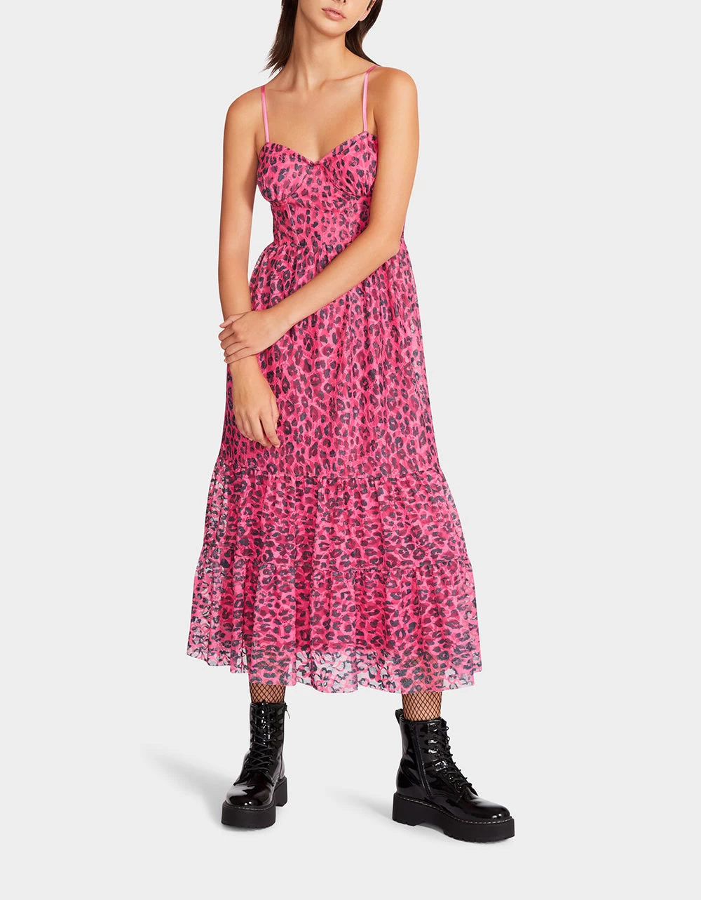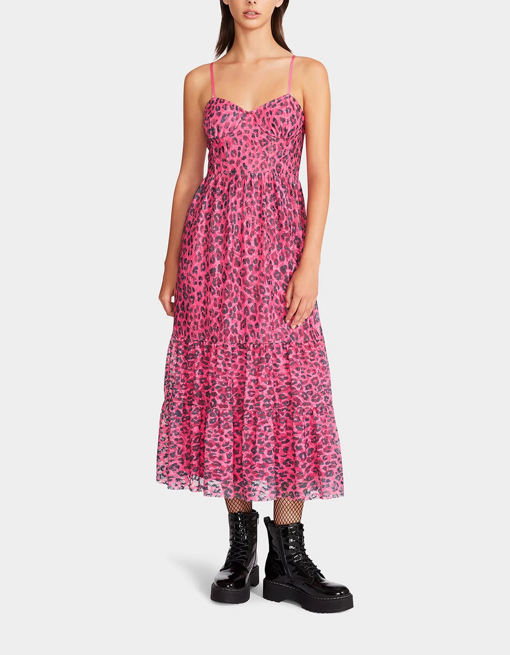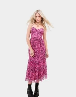 Let out your inner wild side while wearing the hot pink leopard print lace bustier dress. Featuring a sweetheart neckline finished with a bold leopard print design